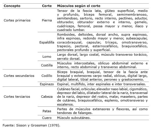 Los músculos del cerdo de donde provinieron los cortes, se presentan en el Cuadro 1. Se aclara que el nombre científico de cada uno de ellos no fue posible presentarlo, debido a su inexistencia como tal.