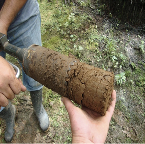 El muestreo puede ajustarse a la variabilidad genotípica de los sistemas radicales de las palmas aceiteras cultivadas a distancias de siembra comerciales (Nodichao et al., 2011) y a la heterogeneidad espacial de los suelos (Covarrubias-Aguirre y Mata-Beltrán, 1979). Los muestreos con barrenos (Figura 1) pueden ser combinados con otras técnicas de estudio, como la excavación y la observación periódica de las raíces utilizando varias modalidades de rizotrones (Bőhm, 1979; Nodichao et al., 2011).