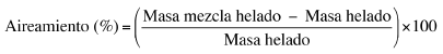 Empleando una tasa estándar tarada y de volumen conocido se midió la masa de la mixtura madurada sin aire incorporado, para luego medir la masa de la mixtura posterior a la aireación y antes del congelamiento. Finalmente, se aplicó la fórmula descrita por (Akalin y Erişir, 2008).