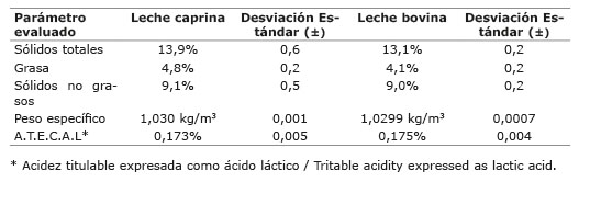 Caracterización preliminar de la leche caprina y bovina utilizada en los procesos