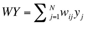 Donde yj es el valor que toma el atributo medido en la vecindad j, y wij es un ponderador cuya suma es la unidad.