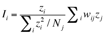 Donde Ii es el índice local, zi el valor de la variable correspondiente al estado i, Nj el conjunto de estados vecinos a i. Un valor elevado positivo (negativo) y significativamente estadístico, da lugar a la existencia de un conglomerado alrededor del estado i de valores similares elevados (bajos). Con base en Ii, es posible encontrar su contribución al índice global de I, y detectar sus valores extremos, lo cual lo convierte en un LISA.