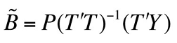 Al regresar la Y en los puntajes T y el cambio de base B, la ecuación para los coeficientes de regresión se expresa como: