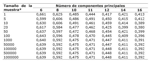 Table 5. Analysis of convergence for the statistic of standard error of prediction (SEP) in the principal components regression (PCR) model. Costa Rica. 2012.