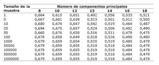 En este caso, T representa los puntajes, P el vector de cargas factorial y e el vector de error específico. Los valores de Xj logran describir lo mejor posible la matriz Xp, tal como en el análisis de componentes principales (Beebe, 1987).