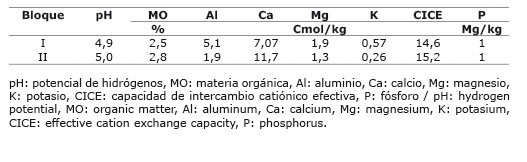Table 1. Soil analysis of the study area. The Candelaria farm, University of Antioquia, Caucasia, Antioquia, Colombia. 2012.