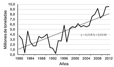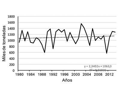 Figure 4. Bean production in Mexico from 1980 to 2014.