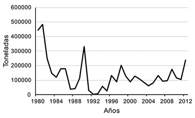 Las importaciones de frijol (Figura 10) han tenido una gran variabilidad durante los años de 1980 a 2012, con base en los datos reportados por la FAO; en 1982 fue cuando se introdujo al país la mayor cantidad de frijol con 482 mil toneladas, y el año con menores compras al exterior fue 1992 con 2909 toneladas. Las variaciones de 659,1, 401,8, 199,4, 165,2 y 160,2% correspondientes con un incremento de 49 939, 104 718, 220 101, 68 758 y 4662 toneladas con respecto a su año inmediato anterior de 1994, 1996, 1990, 1988 y 1996, respectivamente; mientras que los mayores decrementos se dieron en 1990-1991, 1982-1984, 1987 y 1995 con 181,2, 108,3, 77,9 y 54,7%, correspondiente a -327 562, -363 001, -139 481 y -31 348 toneladas con respecto a su año inmediato anterior, respectivamente.