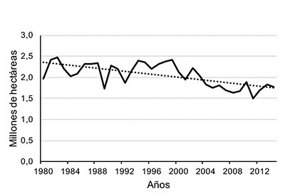Figure 1. Corn planted area in Mexico from 1980 to 2014.