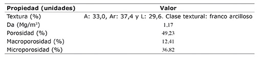 El suelo pertenece a la clasificación taxonómica Fluventic Haplustepts, de textura franco arcillosa, con pH ligeramente alcalino, porcentaje alto de materia orgánica y capacidad de intercambio catiónico en niveles adecuados que garantizan un buen crecimiento de las plantas (Cuadro 1).