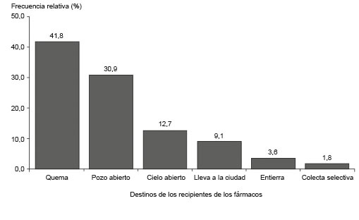 Figure 1. Destination of the drug containers used by farmers involved in family farming, in the municipality of Pinheiro Machado, Brazil. 2015.