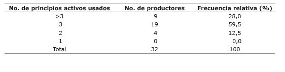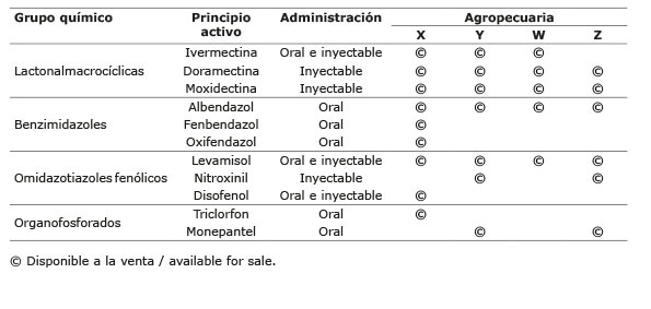 Se observó que la mayoría de los productores hacen rotación de tres o más principios activos durante el año (Cuadro 2). Estas desparasitaciones continuas e indiscriminadas con productos químicos, han sido también reportadas por Candelaria-Martínez et al. (2015) en sistemas de producción de Yucatán, México. Alternar los grupos químicos fue un concepto muy utilizado en la década de los 80 cuando todavía no había resistencia múltiple (Molento, 2009), por ello, para alcanzar una eficacia próxima al 90% se debe mantener el mismo principio activo hasta que el vermífugo pierda la eficacia en la propiedad rural, momento en el que se debe consultar un médico veterinario para el cambio de grupo químico (Chagas et al., 2013).
