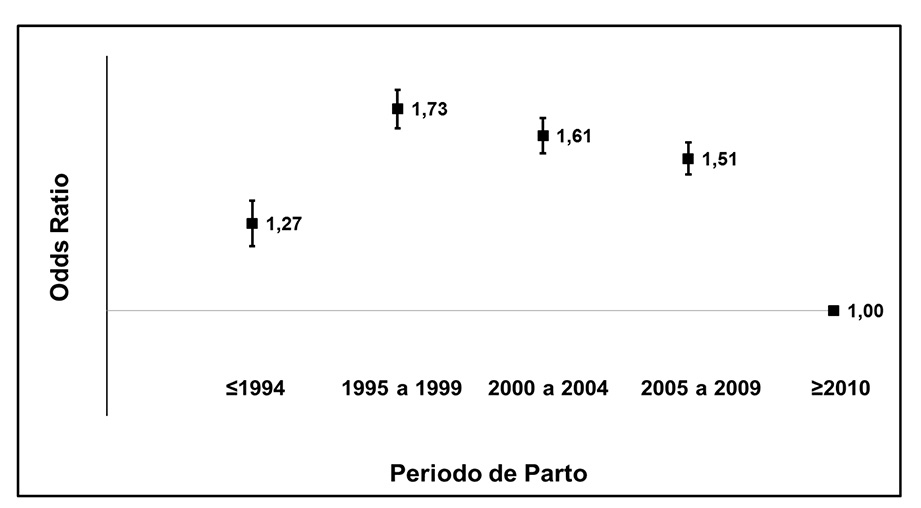 PP = efecto ambiental fijo del periodo de parto (≤1994, 1995 a 1999, 2000 a 2004, 2005 a 2009, ≥2010).