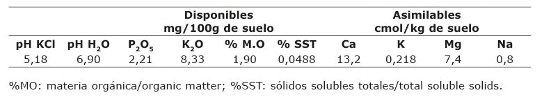 Table 1. Chemical composition of soil in the experimental area before fertilization. Granma, Cuba. 2013-2014.