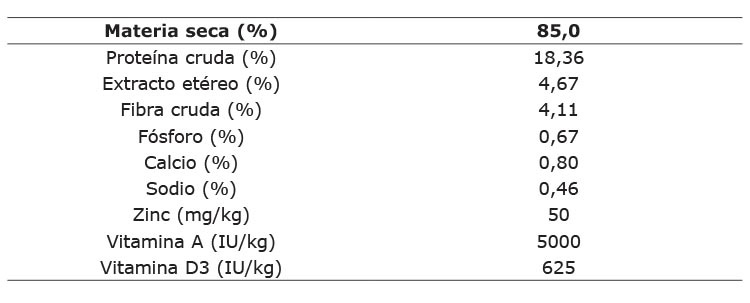 Durante el período de recolección seminal, los animales se mantuvieron en compartimentos separados (tamaño 12 m2), en donde se podían realizar regularmente medidas zoosanitarias como desparasitaciones. Los animales se alimentaban una vez al día, antes del momento de la recolección del semen, con 2,5 kg de un concentrado comercial para verracos (Cuadro 3). Se proporcionó agua ad libitum, mediante dispensadores automáticos.