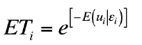 ET es un índice cuyo valor se encuentra entre 0 y 1, siendo 1 el caso hipotético de un hato que opera en la frontera de máxima eficiencia, cuando U = 0. En esta fórmula el valor esperado de Ui condicionado al error εi se obtiene como (ec. 2):