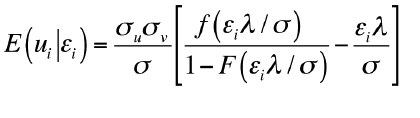 donde σ2 = (σu2 + σv2 ), λ = σu/ σv, f representa la función de densidad normal y F la función de densidad normal acumulada.