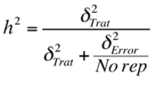 Por otro lado, la heredabilidad o repetitividad H es un indicativo de la validez o utilidad de las pruebas de evaluación de genotipos, cuando H = 1 significa que las diferencias observadas entre las medias genotípicas del ensayo son debido al efecto genético; mientras que H = 0 indica que las diferencias observadas son debido al error aleatorio o experimental (Yan y Holland, 2010).