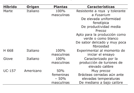 Estos resultados indican la mayor predisposición a producir turiones de elevado calibre de los genotipos Giove y H-668. Por tal motivo, convendría cultivar el híbrido Giove cuando el objetivo es el de abastecer mercados con elevadas exigencias respecto de los calibres, como es el caso de la Unión Europea.
