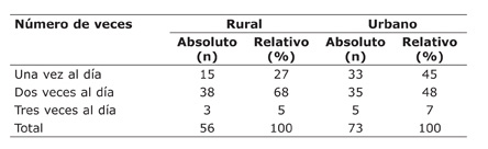 La mayoría de las familias de la zona urbana que realizaban esta práctica hervían los frijoles de una a dos veces al día, mientras que en la zona rural, la mayoría de estas familias hervían los frijoles dos veces al día (Cuadro 3).