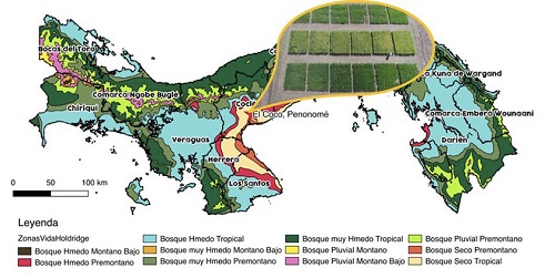 Figure 1. Geographic location of the study of the nutrients’ absorption in two rice varieties, according to the classification of life zones of Holdridge (1967). Pacifico Marciaga Experimental Field. Penonome, Panama. 2016.