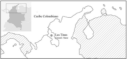 Figure 1. Geographical location of the experiment in the Sabanas Colinas area in the Colombian Caribbean of Las Tinas, Corozal, Colombia. 2017