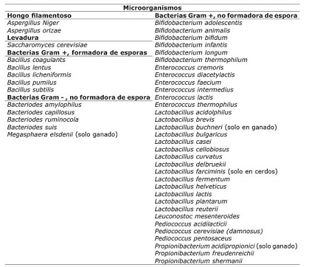 En la Cuadro 1 se presentan los microorganismos vivos permitidos en alimentos para animales en Costa Rica y en los estados miembros de la Asociación Americana de Oficiales de Control de Alimentos para Animales ( Jarman, 2018).