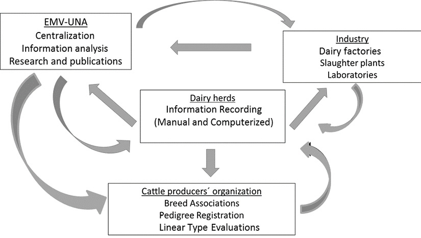 Population research has been an essential tool in different areas of animal production, such as epidemiology and animal breeding. The study of animal performance directly in the production sites is essential for a more comprehensive understanding of the productive processes. Farm-based Livestock Information Systems (LIS) can provide an effective and low-cost source of information for population research, especially for traits that are difficult to measure, like health data (Parker-Gaddis et al., 2012).The Regional Center of Informatics for Sustainable Animal Production (CRIPAS, for its acronym in Spanish), is a project developed in the Veterinary Medicine School (EMV, for its acronym in Spanish) of the Universidad Nacional (UNA, Costa Rica), aiming at the recording and storage of information from cattle production systems (Romero-Zúñiga et al., 2011). This initiative started in 1986 as an exchange project between the Universidad Nacional of Costa Rica and the University of Utrecht in the Netherlands. As part of the initial actions of the project, the Veterinary Automated Management and Production control Programme (VAMPP®), (Noordhuizen and Buurman, 1984; Pérez et al., 1989) was introduced to Costa Rica.