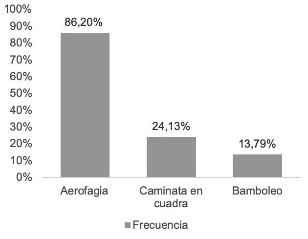 Además, se reportó que el comportamiento observado con mayor frecuencia por los encuestados fue la aerofagia, seguida por la caminata en cuadra y por último, el bamboleo, lo cual se muestra en la Figura 2.