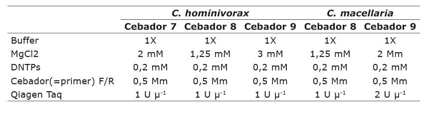 Table 3. Optimized protocols of each primer for the C. hominivorax and C. macellaria. species. Panamá, 2007.