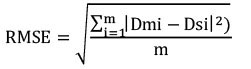Donde Dmi y Dsi, son el valor del dato observado y el valor del dato simulado, respectivamente, y m el número de datos comparados.
