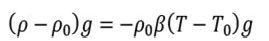 Donde β es el coeficiente de expansión térmica, g es la fuerza de gravedad, ρ y T son la densidad y la temperatura del aire con el subíndice representando un estado de referencia.