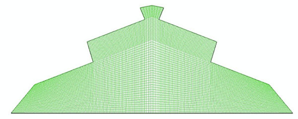 Con el fin de permitir el desarrollo adecuado de los procesos físicos estudiados dentro de la capa límite atmosférica, se generó un gran dominio computacional (250 m y 50 m para los ejes x-y, respectivamente), dicho dominio que incluía el invernadero estudiado se construyó siguiendo los parámetros recomendados por Etheridge (2011). Se usó una grilla no estructural para dividir el dominio computacional en un total de 462,967 elementos cuadrados, la grilla se refinó en la zona de cubierta, el suelo y las áreas de ventilación que son zonas donde se espera que se presenten gradientes térmicas y de velocidad significativa (Figura 3). Este número de elementos se obtuvo luego de realizar una prueba de independencia de la solución al tamaño de la grilla siguiendo el procedimiento realizado por He et al. (2017). La calidad de la grilla numérica fue evaluada mediante el determinante relativo 2X2, el cual mostró un comportamiento superior al 99,85 % con celdas entre 0,95 y 1, lo que indica un elemento de malla perfectamente regular, adicionalmente se evaluó el factor de asimetría, donde un 93,8 % de los volúmenes activos exhibió un valor dentro del rango de 0-0,25, considerado de excelente calidad (ANSYS, 2017; Baeza et al., 2017).