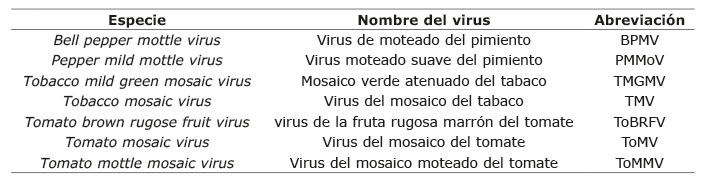 Table 1. Main species of the Tobamovirus genus that affect Solanaceae.
