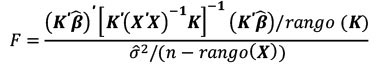Bajo este enfoque la hipótesis nula (H0) se define de la forma K'β = 0, donde K’β es una función estimable. Esta hipótesis puede ser probada con el uso del estadístico F, definido en (3):