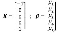 El nivel de significancia (α) que se utilizó fue de 0,05. La diferencia mínima a ser detectada (tamaño del efecto), se determinó mediante un consenso práctico-estadístico con Ingenieros Agrónomos especialistas en el cultivo en cuestión, se convino que una diferencia del 10 % con respecto a la media y cinco tratamientos eran las situaciones más frecuentes a las que se enfrentan en la práctica de ensayos en Costa Rica. Por lo tanto, las matrices K y β quedaron definidas de la siguiente manera (5):