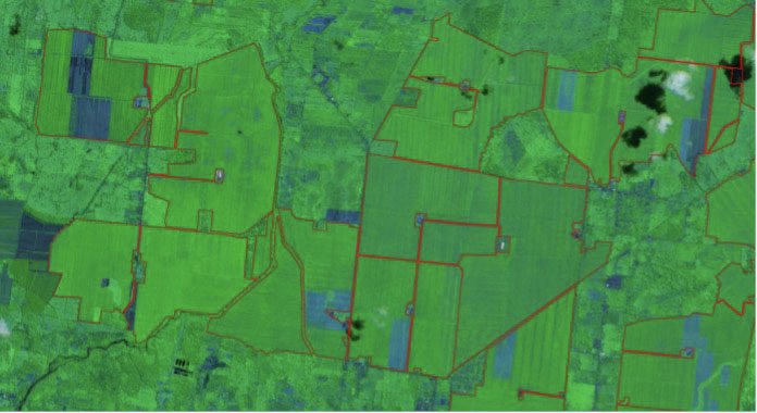 En la delimitación del área de las plantaciones de banano se han utilizado tanto sensores pasivos como sensores activos. Debido a la forma de la siembra de las plantaciones comerciales con fines de exportación son fáciles de identificar a nivel visual en una imagen satelital (Figura 3); sin embargo, a nivel espectral tienden a confundirse con el cultivo de palma aceitera y los bosques inundados de palmas silvestres (Pedroni, 2003).