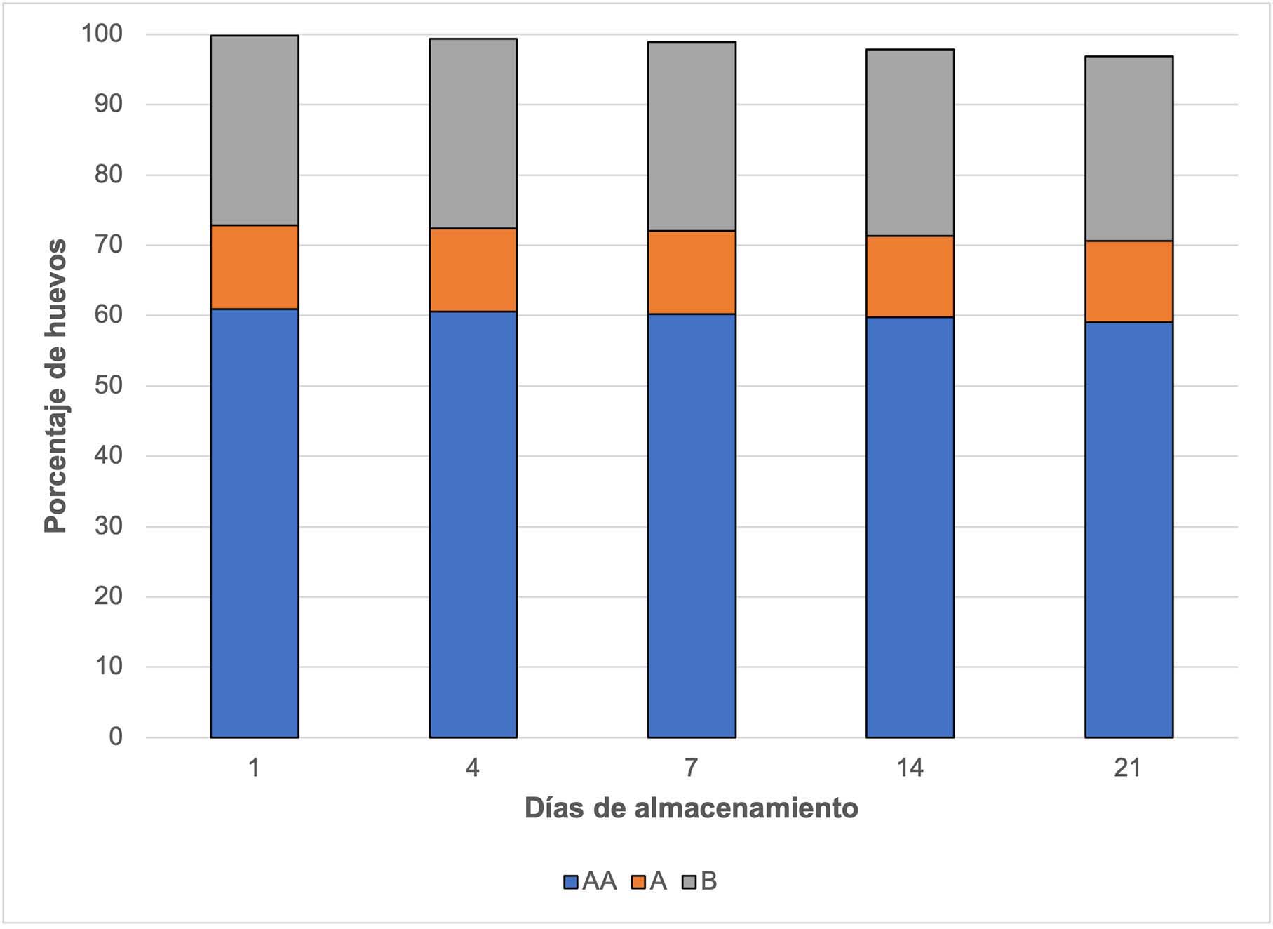 AA: huevos grado AA, A: huevos grado A, B: huevos grado B.