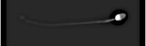 Las imágenes que rinde el Trumorph®, en el caso de mamíferos, permite distinguir los componentes celulares, se observa el acrosoma, la zona post-acrosómica, el cuello, la pieza intermedia (donde la presencia de restos citoplasmáticos es muy superior a lo observado tras fijación y tinción), la pieza principal y la pieza terminal del flagelo (Figura 1).
