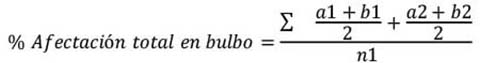Los porcentajes de daño, tanto en bulbos como en hojas, fueron determinados y analizados al comparar entre tiempos (2, 5, 6, 8 y 12 dpi) y entre tratamientos (inoculación individual y coinfección). El área total afectada para cada tratamiento se calculó por medio del programa ImageJ. Para ello, se tomó un registro fotográfico en los tiempos establecidos en la metodología y se calculó el porcentaje de afectación total en bulbo (ecuación 1) y hoja (ecuación 2).