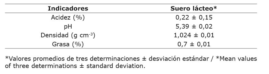 Los indicadores químico-físicos determinados al suero lácteo (Cuadro 2) evidenciaron valores característicos de este producto.