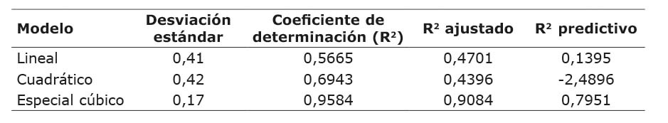 Los resultados de los tres ajustes del modelo: lineal, cuadrático y especial cúbico se muestran en el Cuadro 6.