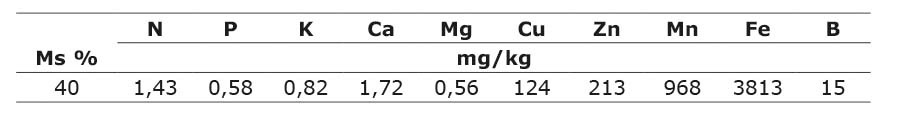 Como fertilizante orgánico se utilizó lombricompost de lombriz roja californiana (Eisenia foetida) producido en la FESL, a base de estiércol de ganado bovino (Cuadro 1). La cantidad de lombricompost a utilizar se calculó a partir de la concentración de nitrógeno en el humus y la materia seca del mismo, con la finalidad de proveer 150 kg/ha/año de N al terreno.