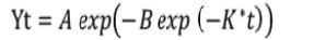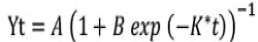 Donde, Yt: longitud en un tiempo t; A: estimativo del crecimiento máximo; B: parámetro de integración, no posee significado biológico; K: pendiente del modelo, el cual es interpretado como el cambio de la longitud en relación con el crecimiento máximo alcanzado.