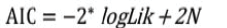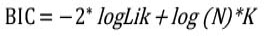 b. Criterio de información de Akaike (AIC) (ecuación 3) y criterio de información bayesiano (BIC) (ecuación 4), expresado mediante la fórmula: