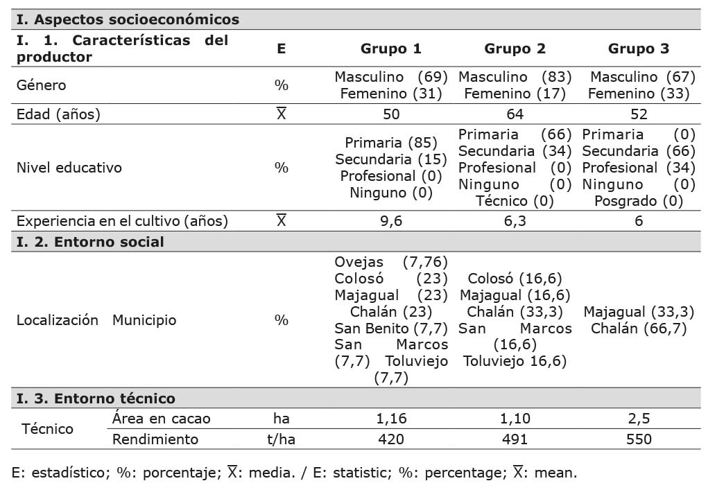Table 2. Typification of producers of the cocoa (Theobroma cacao L.) production system within the Montes de María subregion, Colombia, 2019.