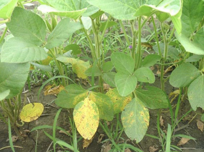 En las últimas cuatro décadas, el concepto control (Lavilla & Ivancovich, 2021; Zadoks & Schein, 1979) ha sido reemplazado por el de manejo integrado de enfermedades (Pilkington & Pilkington, 1997), que tiene como objetivo mitigar el nivel de incidencia y/o severidad de la enfermedad en valores que no reduzcan la producción de soja (Glycine max). Entre las prácticas efectivas para el manejo integrado de la enfermedad se encuentran la rotación de cultivos, el uso de semillas libres de patógeno, el tratamiento de semillas, la aplicación de fungicidas foliares y el uso de diferentes prácticas culturales (Hartman et al., 1999).