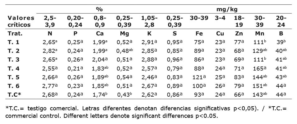 Concentración de nutrientes a nivel foliar