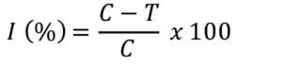 Donde I (%) es el porcentaje de inhibición del crecimiento micelial (radial), C la medida del crecimiento radial del patógeno en el control y T la medida de crecimiento radial del patógeno en presencia del biocontrolador.