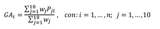 Donde GAi corresponde al grado de adopción individual, wj es el peso relativo de la j-ésima práctica asignada por la opinión de expertos y Pji capta la respuesta de cada persona sobre el uso de dichas prácticas (variable dicotómica donde 1=la utiliza, 0=no la utiliza). La suma producto se divide entre el peso máximo de todas las tecnologías con el fin de estandarizar.